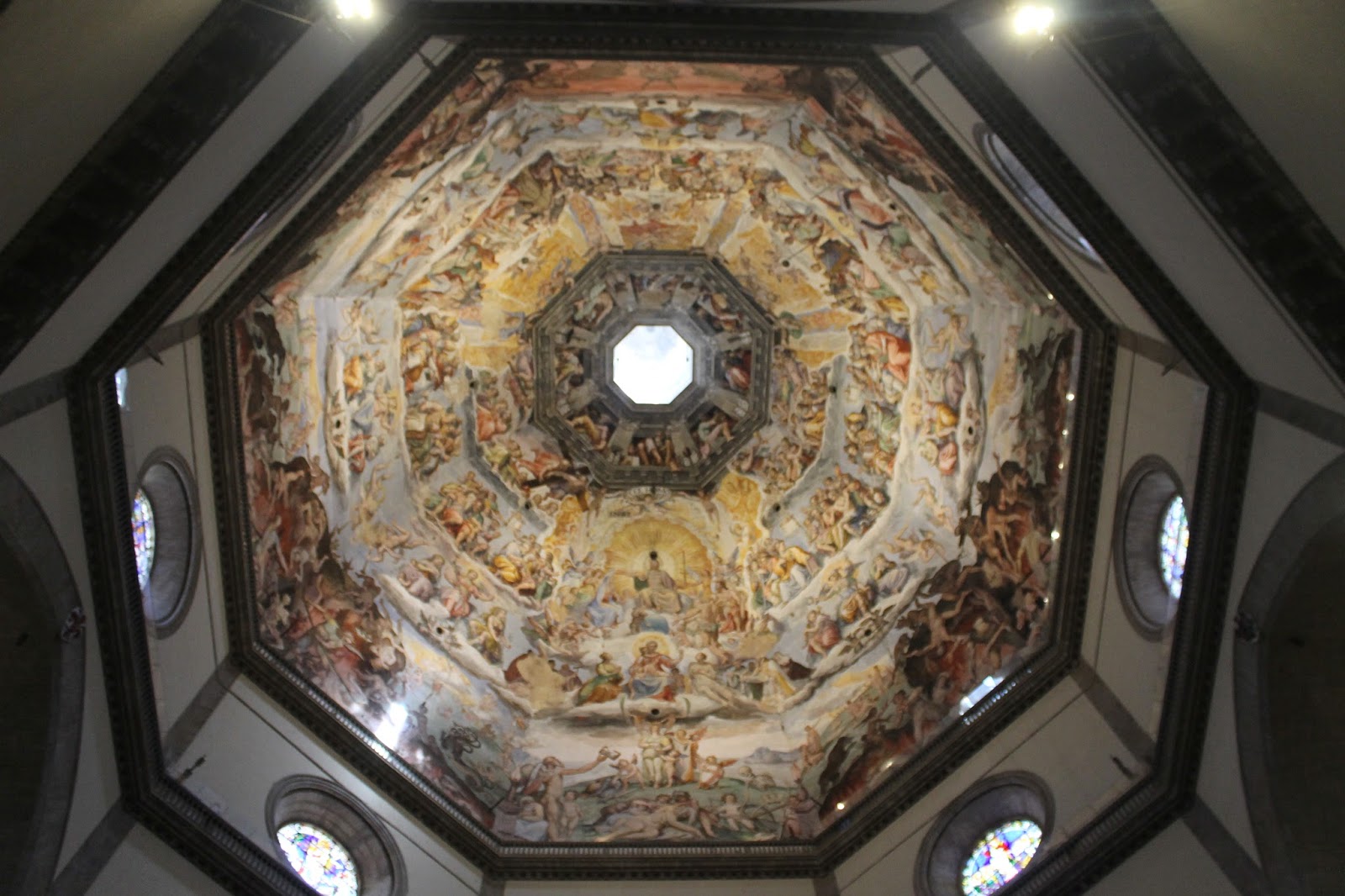 Если в Рим ты влюбляешься страстно, его хочешь, то Флоренция - это та любовь, про которую пишет Петрарка - невинная, чистая, нежная. Здесь нет этой вычурности, изысканности, главные дворцы города внешне выглядят очень просто, но вместе с тем поражают своей величественностью, статностью, ощущением значимости снаружи и изысканностью изнутри. Дуомо (Санта-Мария-дель-Фиоре) же наоборот - это очень красивая, но не барочно-красивая, а классически-красивая церковь, внутри же - простые стены, колонны, но когда ты заходишь под купол - открывается вся красота, и страшная красота этого места - на куполе изображены сцены из ада, как мучаются грешники и изображено так реально и страшно, что поневоле начинаешь задумываться. А подъем на купол по бесконечным винтовым лестницам, переходам - восхитителен, и вид, который открывается оттуда - не передать словами - миллионы черепичных крыш, сады и горы. Идеальная Италия. Стены (на которых висит табличка "на стенах не писать") исписаны фразами - Брунеллески гений, Брунеллески волшебник. Это действительно так - космический масштаб его творения завораживает.
